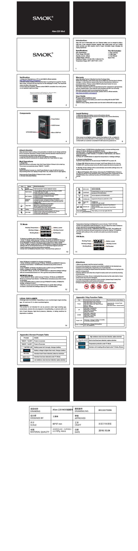 Installing batteries and switching on. Web 1 x user manual spare parts alien 220 mod is fashionable and cool. Important safety information and warnings.