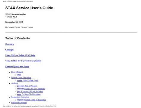 Web staf execution engine (stax) service user's guide. Staf, xml, python, and java. Web staf ant task user's guide (html) this document describes how to use the staf ant task to call into the staf framework from within an ant build script.