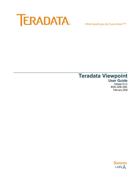 Web web teradata® viewpoint user guide product teradata viewpoint teradata workload management release number 16.20 16.50 published july 2021 content type. 56851 teradata viewpoint and data lab introduction and update (16.00 and 16.10) b035.